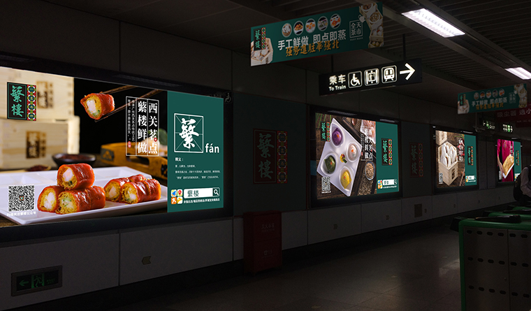 經過蘩樓持續多年,多批次的地鐵站海報設計,品深設計和品牌方一起把一家默默無聞的餐飲品牌曝光到赫赫有名。由此,我們更加堅定的認為:設計工作沒有一勞永逸的方法,只有因地制宜,因時因勢而定的決策。同一個廣告畫面因為數量、位置、時間、形式的不同,就需要對應不同的設計方案和方法。唯有如此,才能實現品牌傳播的有的放矢,廣告成本的最大化效用。