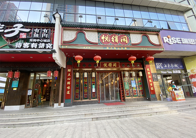 悅得閑廣式點心茶樓空間裝飾設計、茶樓軟裝設計、茶樓空間品牌植入、茶樓平面布局設計、廣式點心茶樓燈光設計。