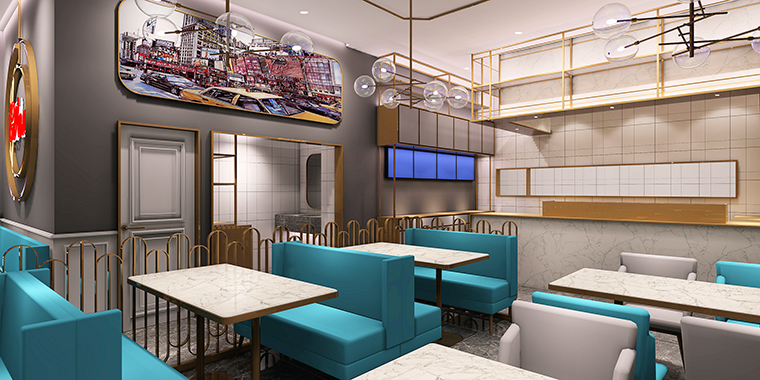港式茶餐廳空間裝飾設計、茶餐廳軟裝設計、茶餐廳空間品牌植入、茶餐廳平面布局設計、茶餐廳燈光設計。