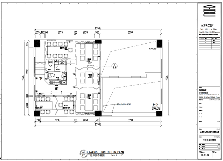 。施工圖中,各種節點大樣足夠清晰,精準到一方桌椅,小到抽屜的一個把手,都要畫清楚,標明白。同時施工還離不開設計師的現場交底、節點驗收,項目經理的規范化管理,主創設計師或者工程經理的定期巡檢。與前期的品牌定位、文化策劃、形象設計同樣花費時間的就是深化階段的施工制圖。對材料、工藝的熟知,對細節的精準把握,對預算的合理劃分,最終將都呈現于一套餐飲空間詳細施工圖中。品牌餐飲門店的空間裝飾設計不僅是天馬行空,落在圖上的每一處,才是品深餐飲設計師數十年的經驗沉淀。在柜體如此眾多情況下,本次整個項目工程硬裝修造價我們控制在2600元/平方米,實現了很好的工程控制!