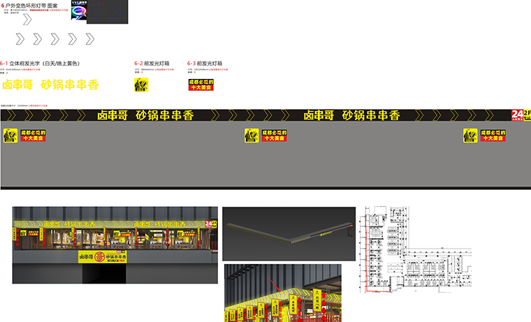 餐廳門面設計除了要大之外,還要傳達顧客最關注的有效信息。這也是品深稱之為進店理由以及消除顧客的進店顧慮等。比如賣的什么產品,有什么特色,價格如何,營業時間等。鹵串哥的幾個店門面設計中,我們一直堅持將鹵串哥地道成都砂鍋串串香,小姐姐必吃成都十大美食,24小時營業,9毛一簽,一串一簽這幾個核心內容不斷重復展現,目的就是把有效信息持續傳播,顧客快速接收,迅速決策。