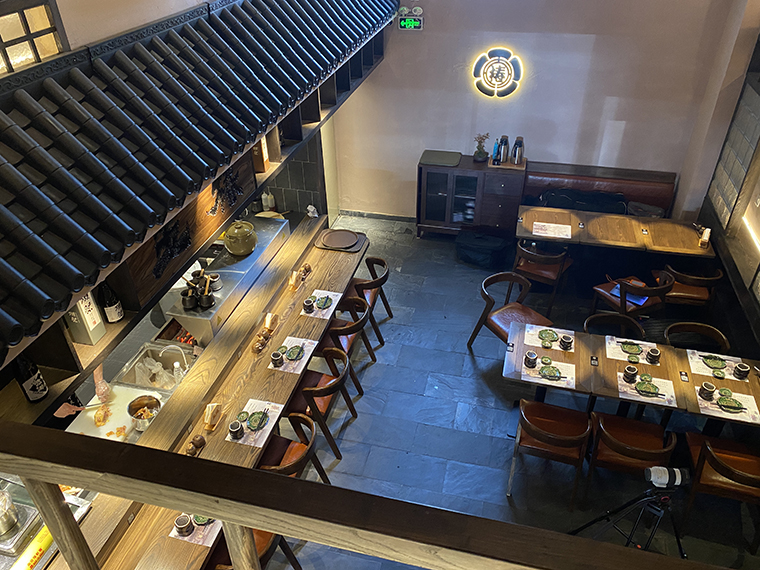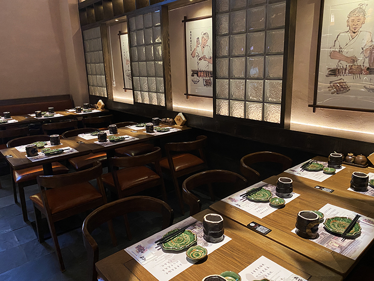 相對于其他日本料理,溫暖治愈有煙火氣的居酒屋是打開心門的神奇鑰匙。在這里,可以褪下面具,卸下防備,輕松肆意地喝酒聊天,大聲談笑,沒有職場的煩惱,沒有生活的瑣碎,有的是伴隨冰涼的鮮啤入喉部之后的片刻歡愉,有的只是一個釋放自我的放空間。居酒屋的熱鬧感,燒鳥店的煙火氣,京都老店的歷史文化魅力,是品深設計團隊重點突破的設計表達。