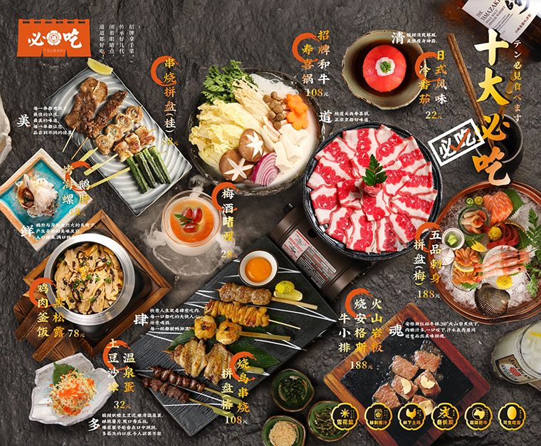 品牌描述:玉椿,一家源于17世紀的日本江戶時代,并以江戶的圣花“椿”為名的京都風情燒鳥居酒屋。